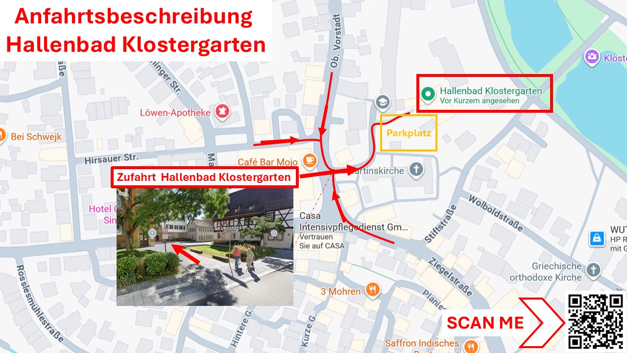 Klostergartenbad (25-m-Becken, 4 Bahnen) Hier finden Sie eine Anfahrtsbeschreibung zum Hallenbad Klostergarten.
